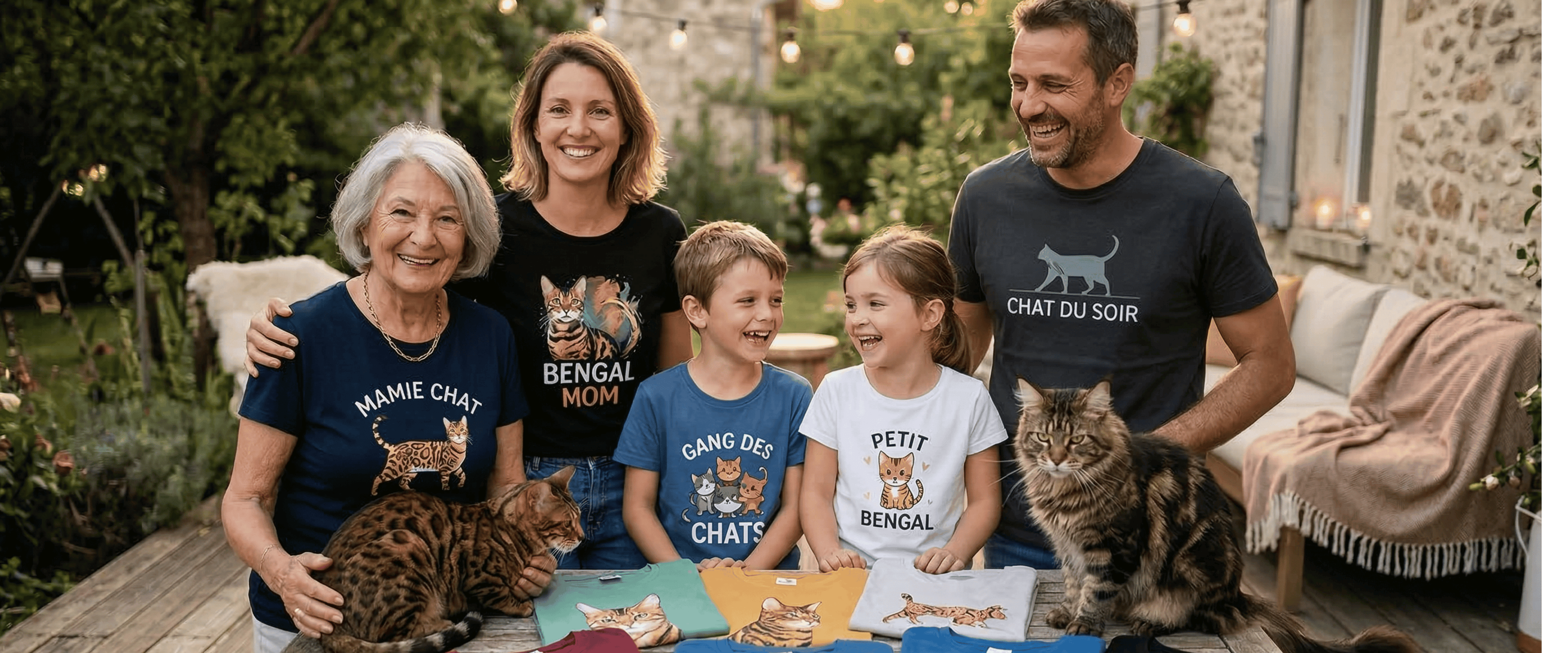Nous utilisons des matériaux confortables et de haute qualité pour tous nos t-shirts : assez doux pour les séances de câlins, assez résistants pour les moments de jeu, et toujours respectueux de votre peau. La composition exacte peut varier selon le modèle, mais vous trouverez tous les détails sur chaque fiche produit.